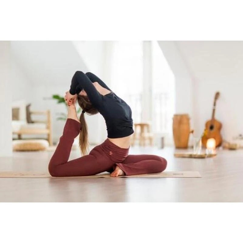 De Pranafied – Trendy yogalegging met omslagband en wijde pijpen. Biologisch katoen is een comfortabele en zachte flared yogabroek. De broek is gemaakt met een brede omslagband die maximale bewegingsvrijheid garandeert. De omslagband maakt deze yoga broek ook erg geschikt voor zwangere yogini’s. Aan de achterkant van de omslagband vind je een mooi gerimpeld detail.